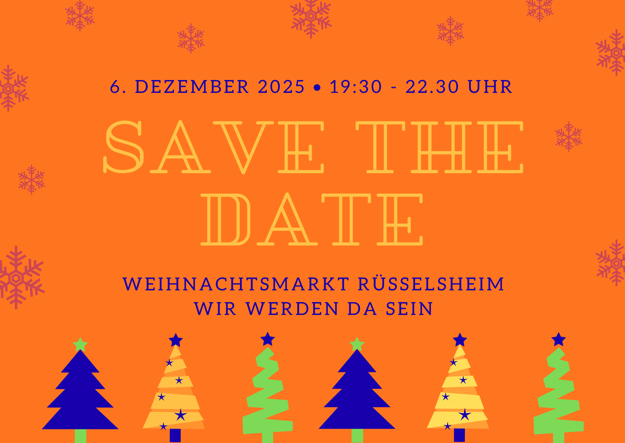 Im Rahmen der ORANGE DAYS in Rüsselsheim sind wir am 6. Dezember in der Zeit von 19:30 bis 22:30 Uhr mit einem Stand auf dem Weihnachtsmarkt vertreten und freuen uns über euren Besuch.